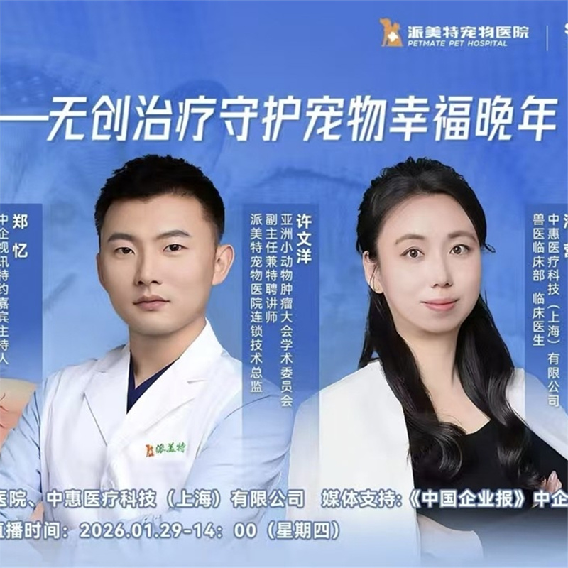 此次直播聚焦宠物肿瘤防治、无创治疗技术普及及老年宠物科学养护,邀请派美特宠物医院连锁技术总监许文洋医生、中惠医疗兽医师潘营医生担任主讲嘉宾,结合临床案例与前沿技术,为全国宠物家长带来专业科普,旨在普及...