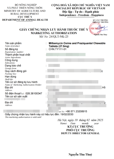 越南农业农村部动物卫生局批文