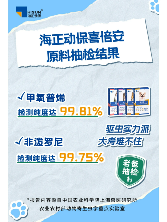 第三方检测机构“老爸抽检”的技术团队曾在实地核验中测得,海正动保核心原料的纯度高达99.5%以上,这一可量化的数据,直观印证了其在“第一车间”的硬核把控力。